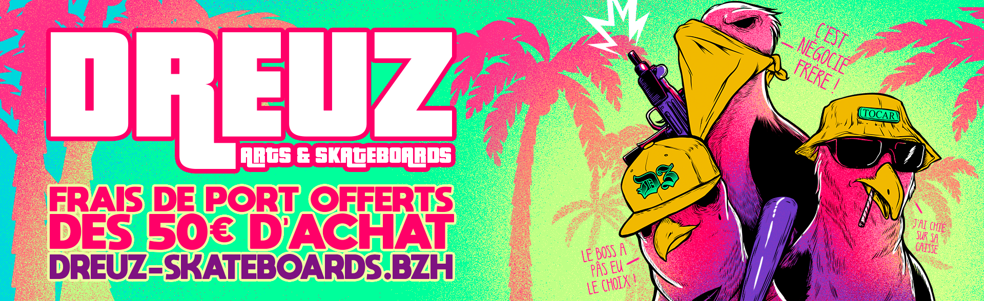 A but décoratif principalement, les Skateboards "DREUZ" sortent des meilleurs fabricants de skates au monde, ce qui assure aux skateur.euse.s, une deck robuste 100% érable canadien 7 plis.