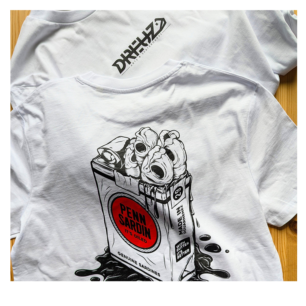 DREUZ propose également des t shirts 100% coton biologique 180gr/m2, avec des visuels originaux, sérigraphiés à la main par l'atelier Youtar 1984 à Brest.