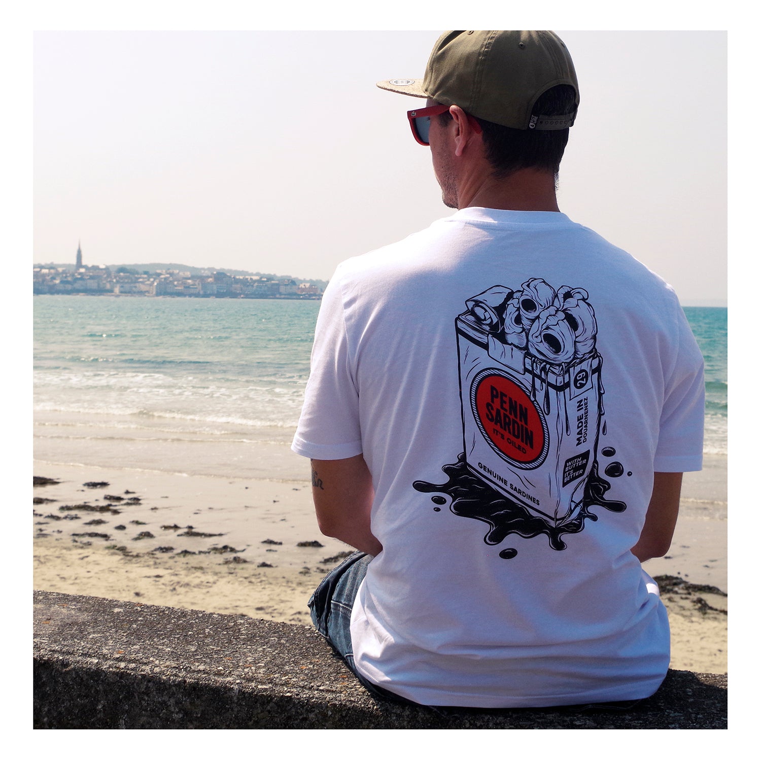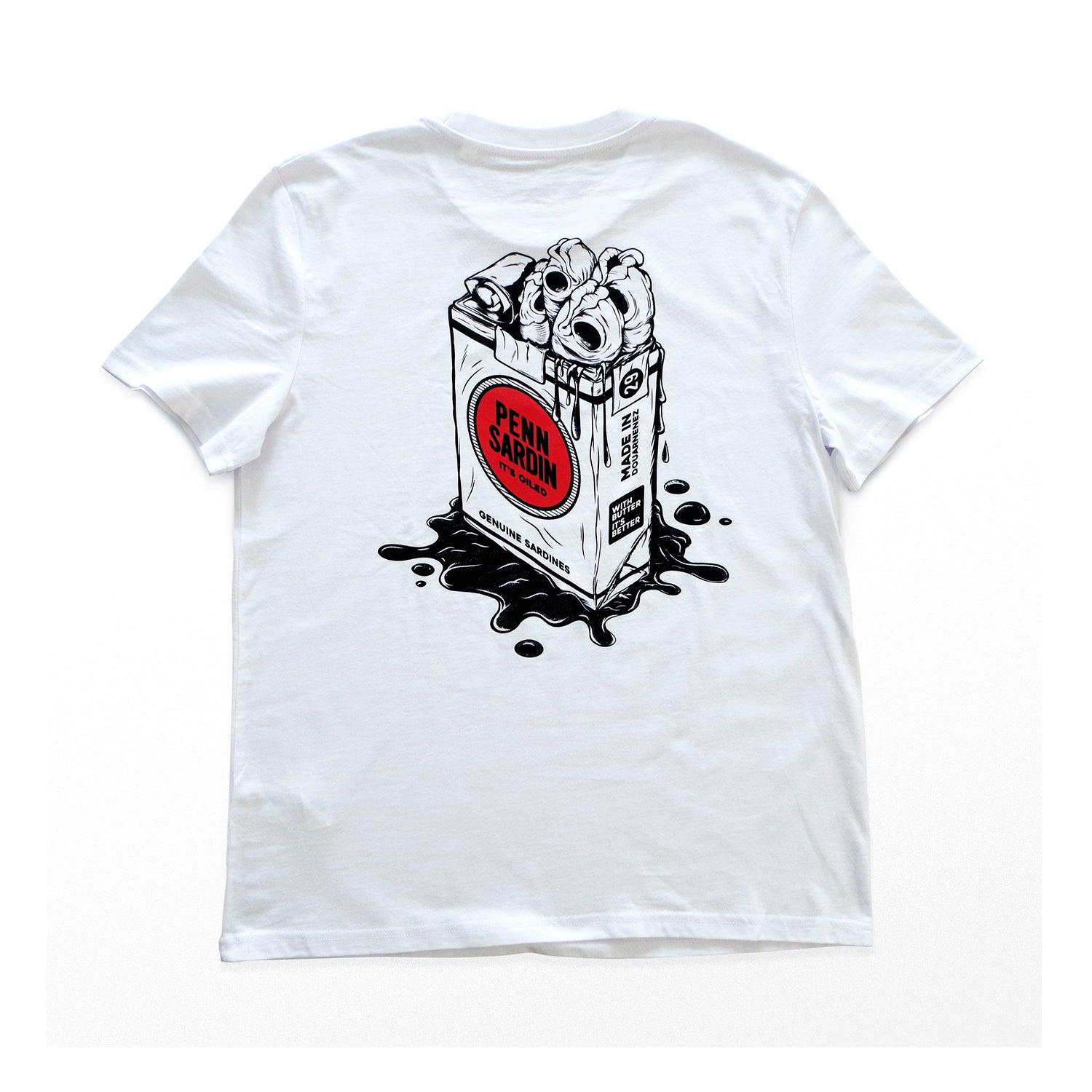 Dreuz Arts & Skateboards T-shirt Unisexe Blanc - "Penn Sardin, it's oiled!"